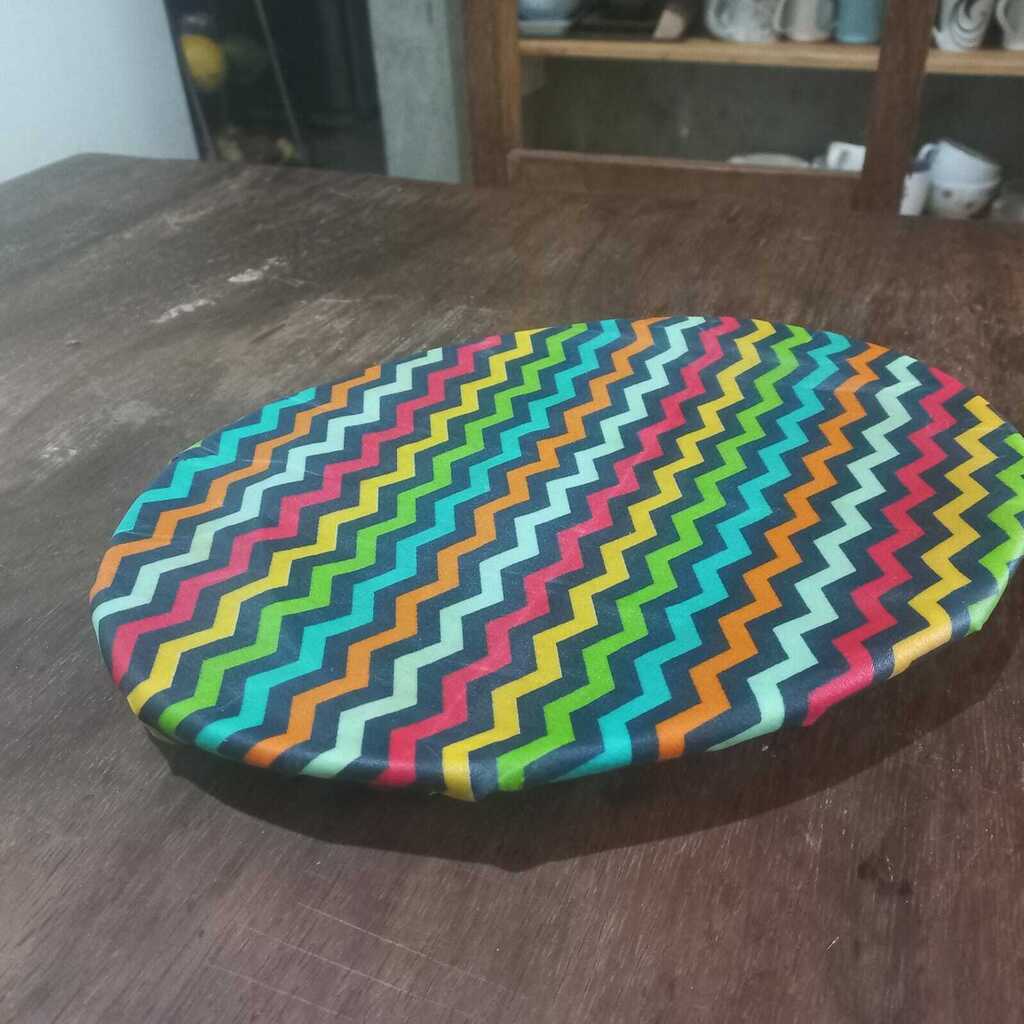 Colocar sobre o alimento ou tigela e usar o calor das mãos para moldar e selar o pano.